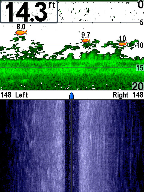 At the same time the sonar worked well too indicating the bottom and the weeds on top of it. Only when weeds were very dense did the sonar "think" the bottom was only 4 feet when in reality it was 12 and the weeds were 8 feet high.I did not see any fish marked on the side imaging, yet of course wasn't watching the screen all the time. The sonar marked a few fish.